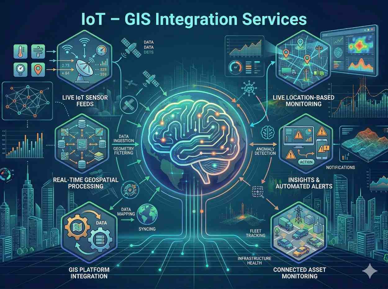 Our IoT – GIS Integration Services connect the physical and digital worlds by merging real-time sensor data with powerful GIS platforms. This creates dynamic, location-based monitoring systems that deliver immediate actionable insights.